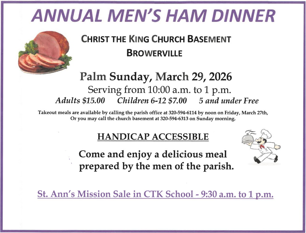 10am CTK Men's Annual Ham Dinner